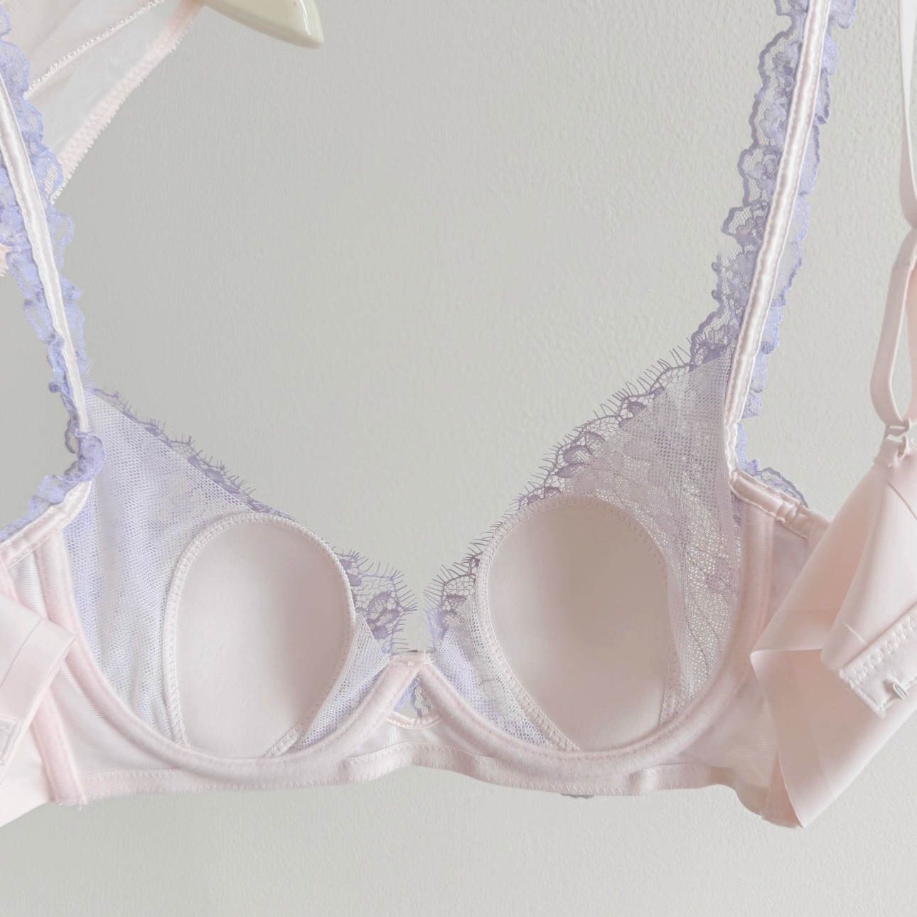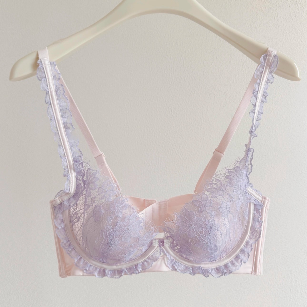 紫色高级感法式薄款蕾丝内衣女大胸显小兔耳杯软钢圈性感文胸套装