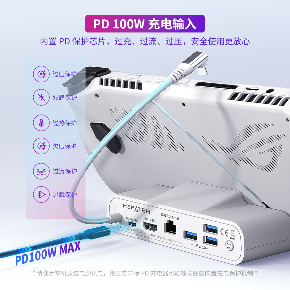 ROGAlly RGB发光扩展底座SteamDeck拓展坞4K60Hz千兆网卡100W输入