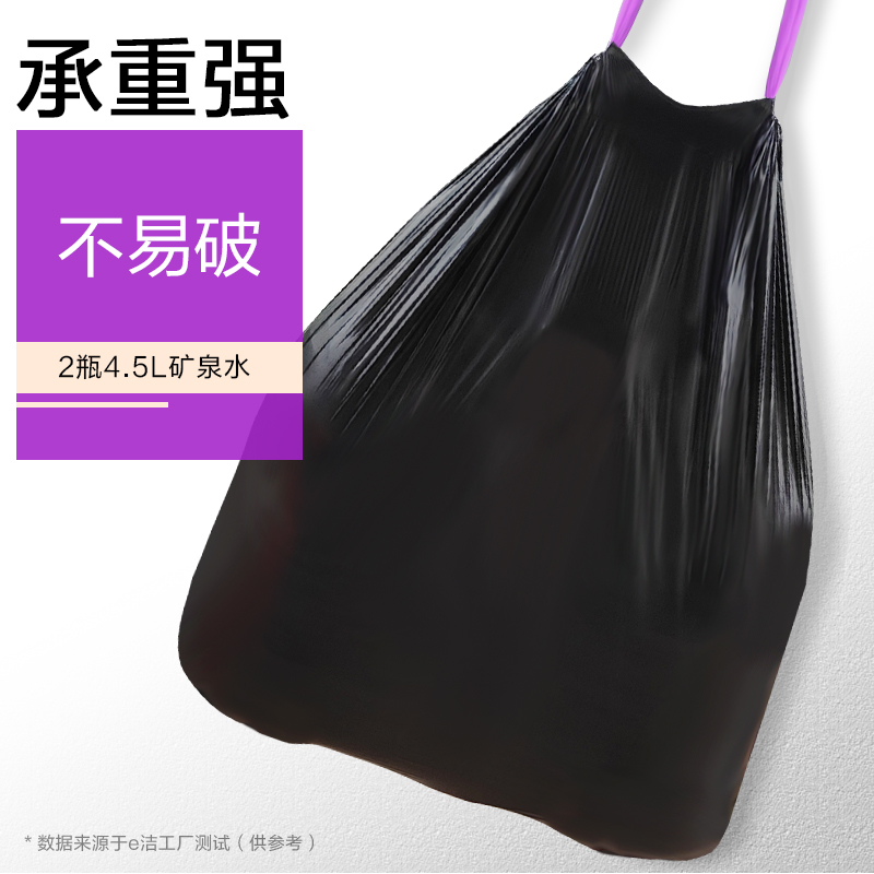 e洁垃圾袋家用手提式抽绳加厚加大家用宿舍抽绳式免撕紫色塑料袋