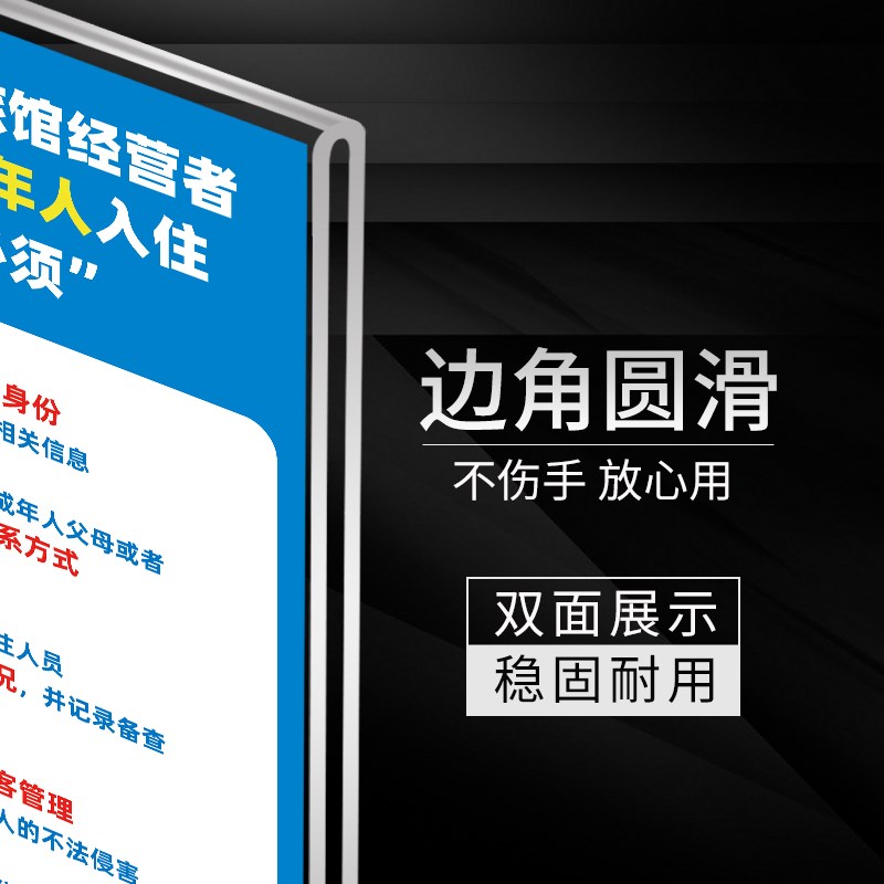 宾馆前台接待桌牌亚克力台卡旅店经营者接待未成年入住桌面立牌巡
