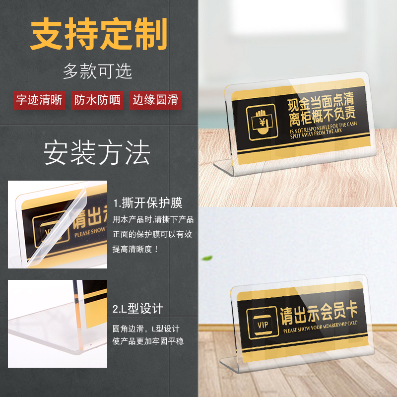定制亚克力贵重物品请寄存如遗失概不负责宾馆酒店收银台温馨提示牌店铺标语牌台卡祝君晚安房间立牌桌牌订做