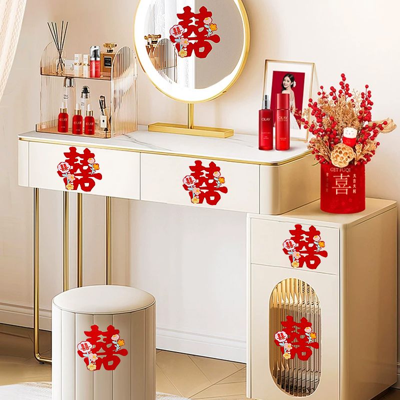 楼梯台阶喜字贴婚房喜字扶手装饰布置婚礼用品大全专用柜子小喜字