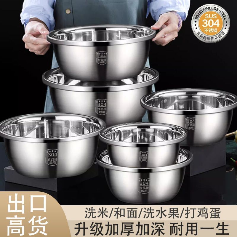 加厚304不锈钢调料盆打蛋盆和面盆洗菜盆汤盆多用盆钢盆大容量