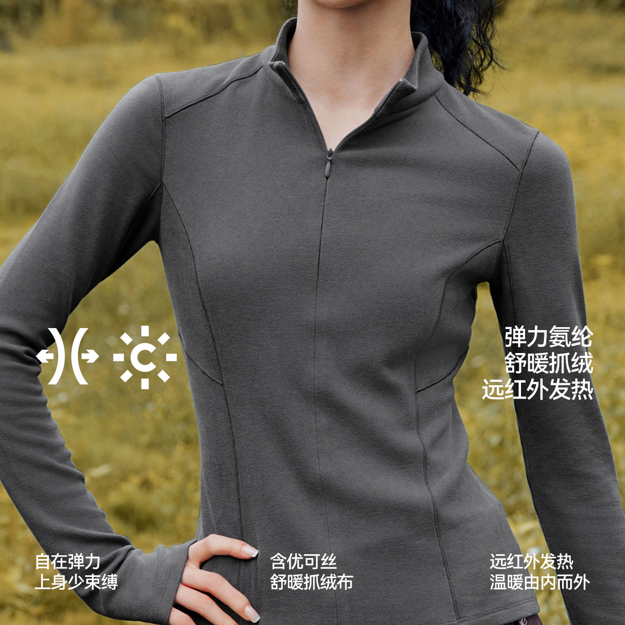 蕉下半拉链打底衫女士秋冬修身摇粒绒新款保暖户外上衣长袖T恤