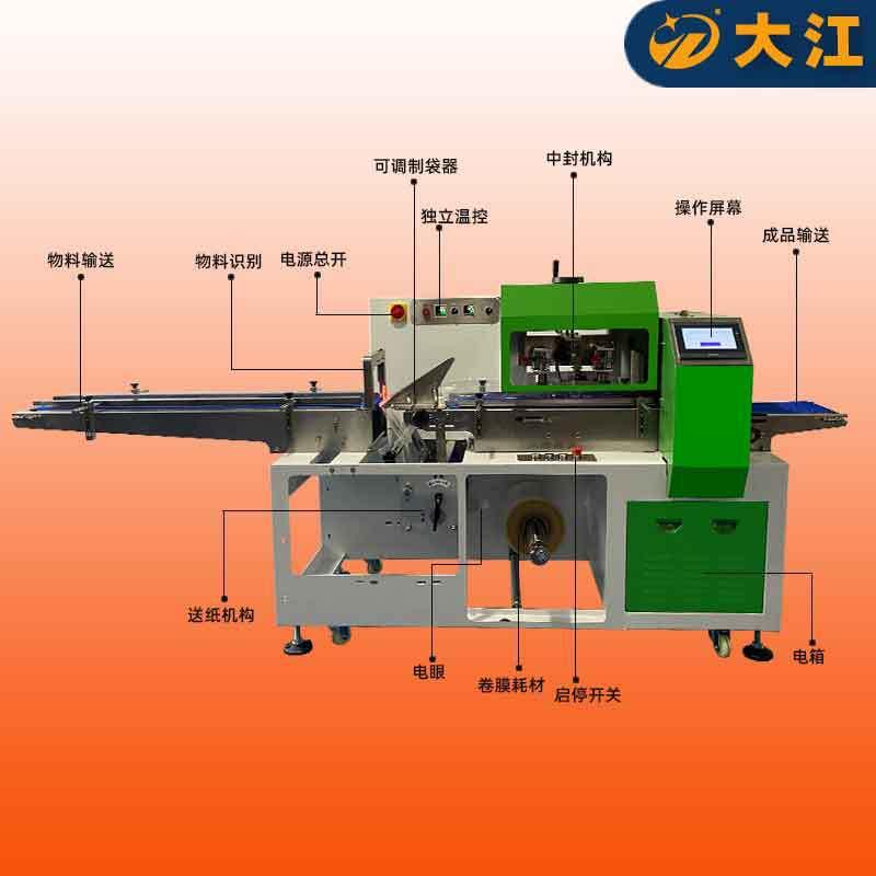 供应汽配五金件包装机DJ450下走膜多功能金属制品枕式套袋机包邮