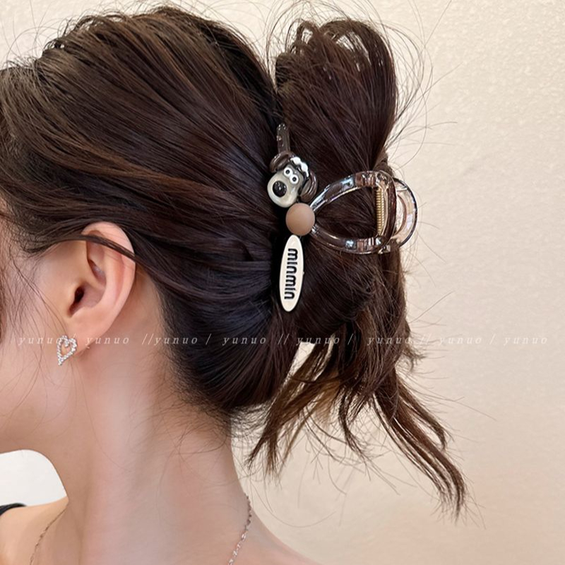 趣味焦糖猫咪抓夹韩国发饰甜美百搭高级感发夹后脑勺鲨鱼夹中号女