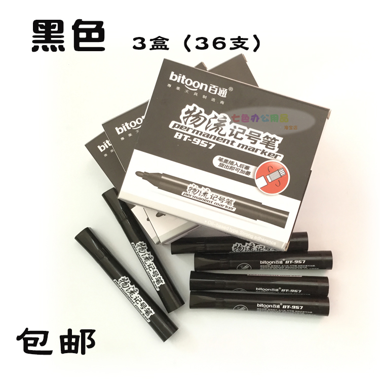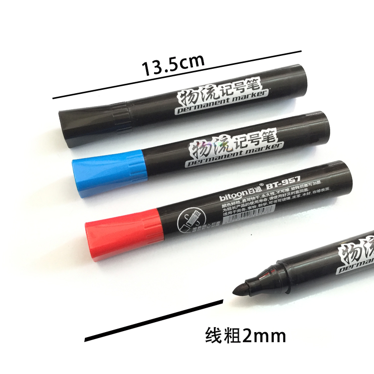 12支装百通油性防水可加水物流箱头笔学生办公专用记号笔可加墨水