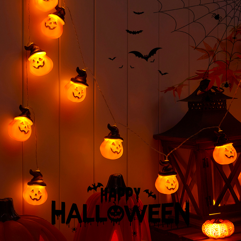 万圣节装扮恐怖蜘蛛网骷髅装饰南瓜氛围灯串道具挂饰挂件场景布置