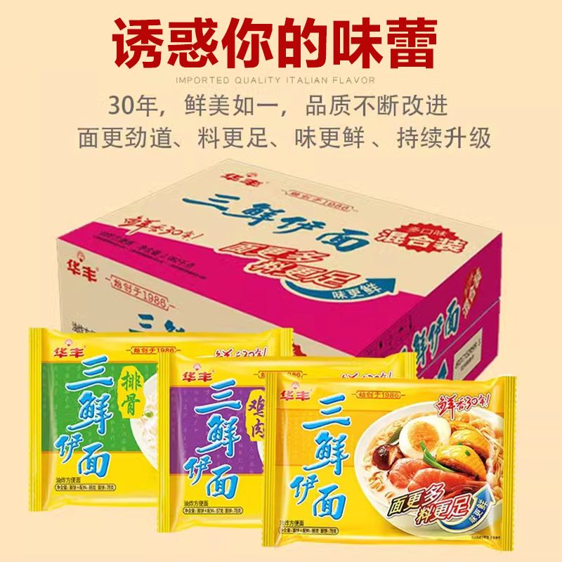 华丰三鲜伊面方便面整箱泡面袋装80后怀旧速食品干吃面官方旗舰店