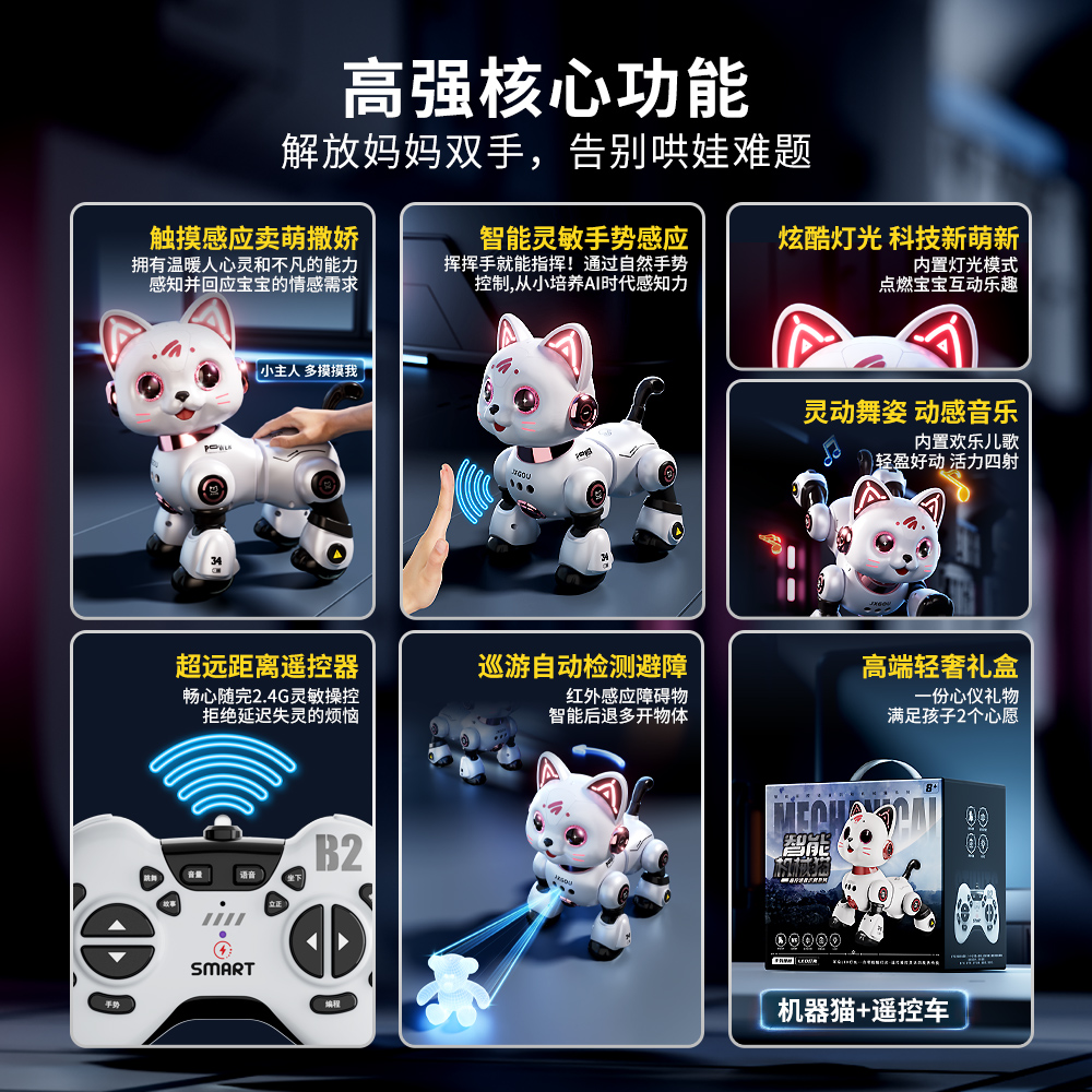 智能机器猫儿童编程玩具男孩女孩1一3岁电动遥控走路会叫仿真礼物