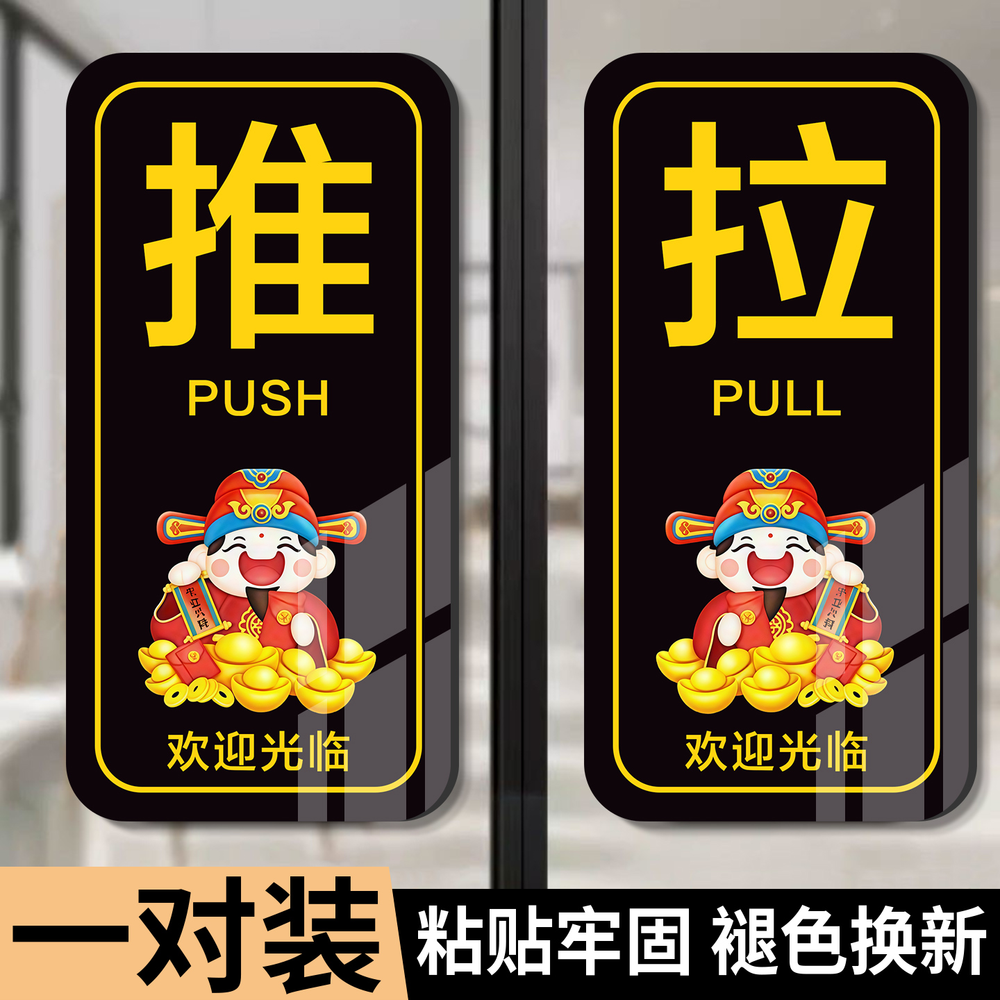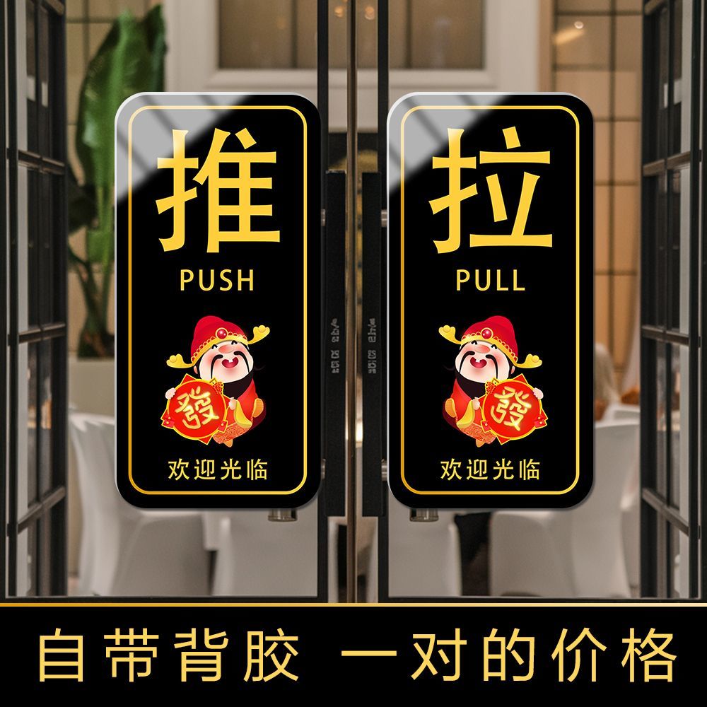 推拉门贴左右移玻璃门标志牌标示标牌温馨提示牌定制亚克力指示牌推拉门牌创意酒店商场店铺门口防撞提示贴纸