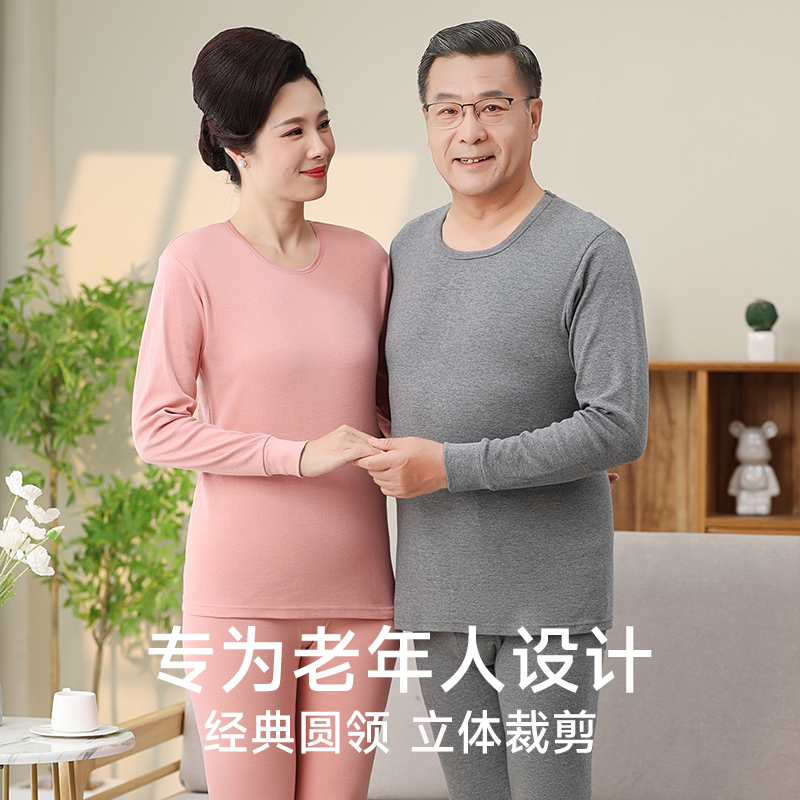 中老年人纯棉保暖内衣套装女士秋男士爸爸妈妈秋衣秋裤两件套德绒