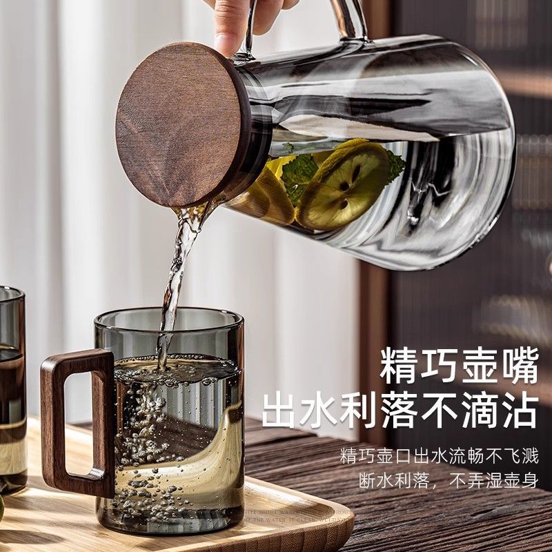 冷水壶家用客厅储水加厚凉水壶玻璃耐高温凉水杯大容量中式泡茶壶