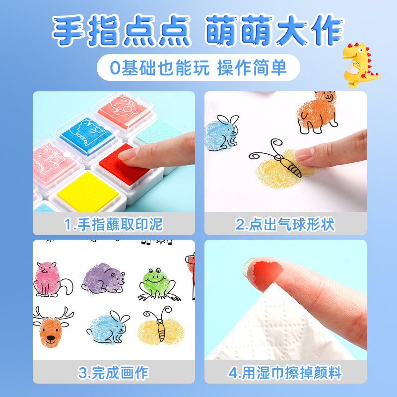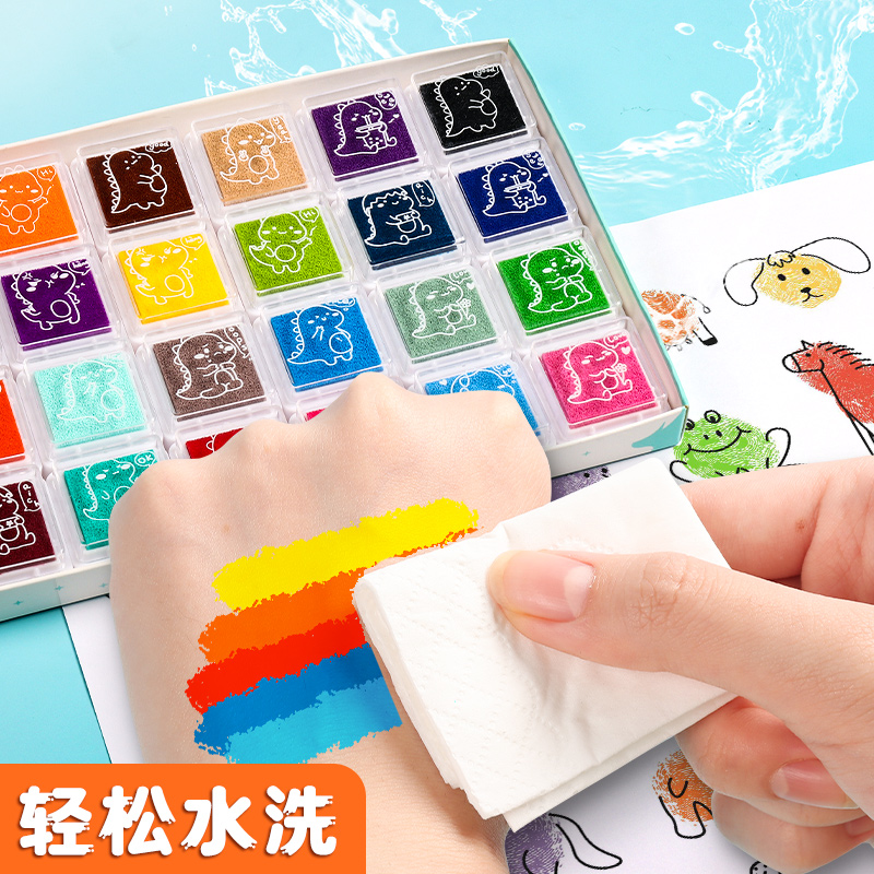 儿童手指画印泥彩色印泥印台手掌手指印泥盘24色幼儿园手指画印颜料安全绘画涂鸦可水洗小学生绘画工具印尼