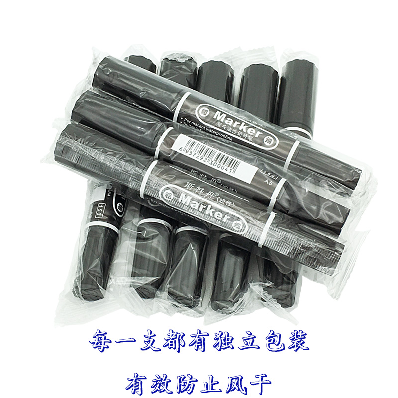 包邮箱头笔双头黑色记号笔不掉色可加墨粗大头彩色小头油性笔批发