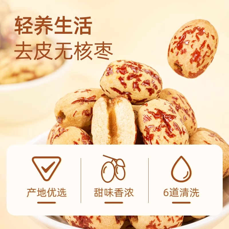 去皮去核红枣婴儿新疆灰枣宝宝辅食大枣脱皮零食旗舰店无核免洗