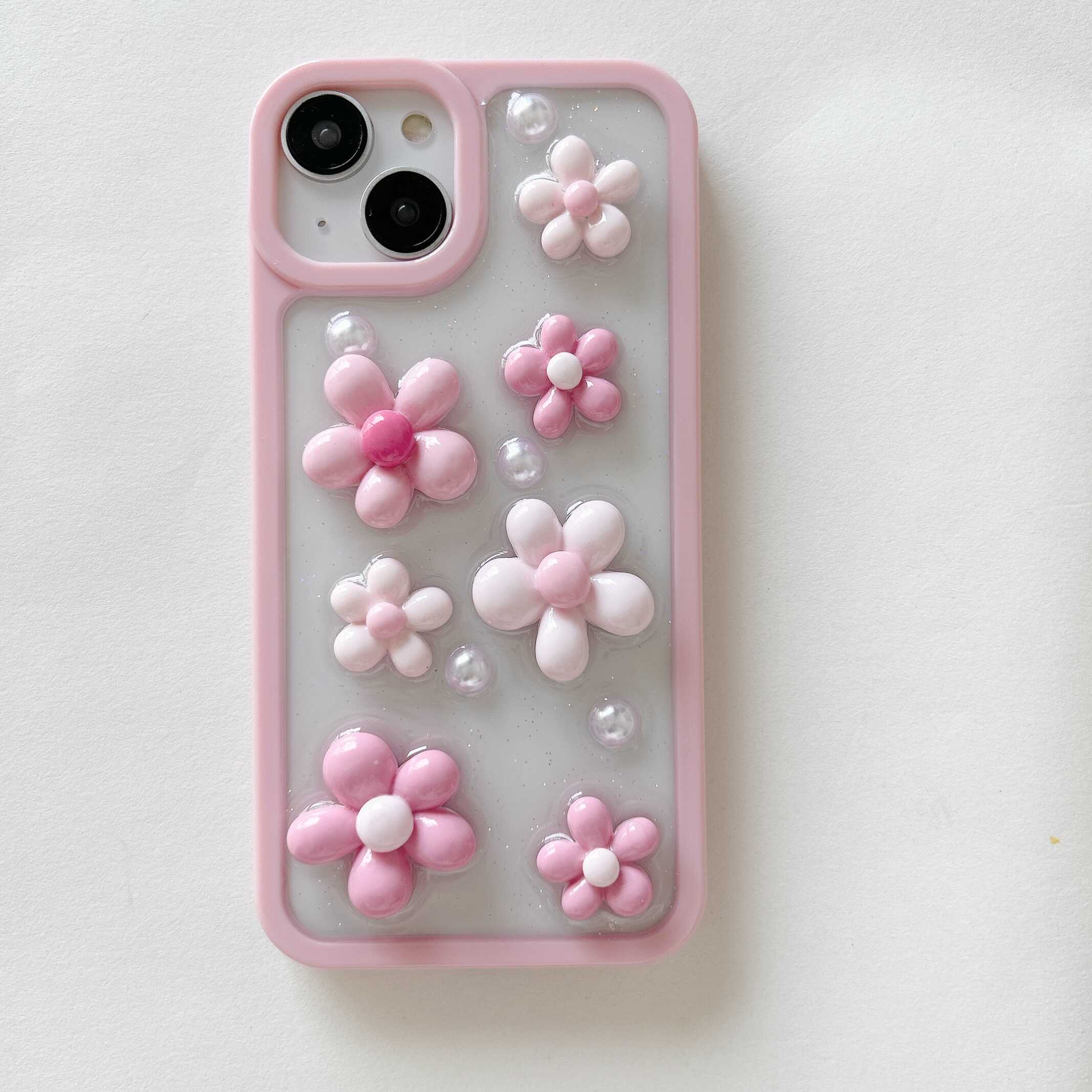 【一件也是批发价】滴胶五瓣花花朵粉色手机壳iphone15promax闪粉保护套适用 11 12 13 14 15全系列