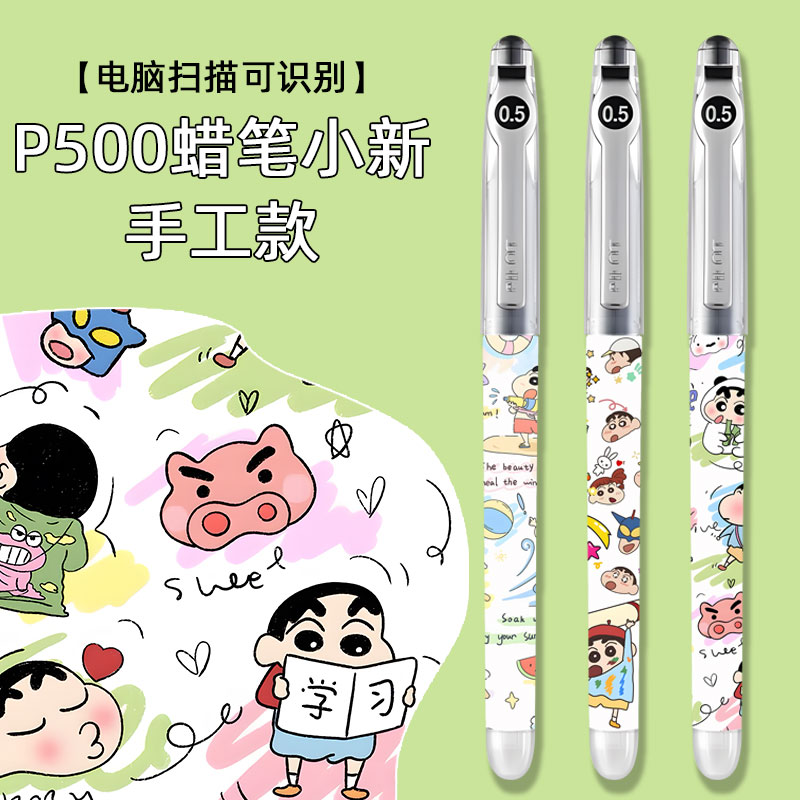 正品pilot日本百乐笔中性笔DIY蜡笔小新限定笔卡通款学生用拔帽笔BL-P50 P500考试专用黑水笔签字笔0.5