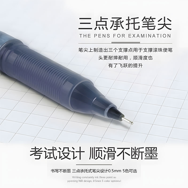 ST刷题笔高颜值按动中性笔圆珠笔黑色水笔小学生专用考试0.5速干碳素笔水性黑笔按压式做笔记签字笔非按斤卖
