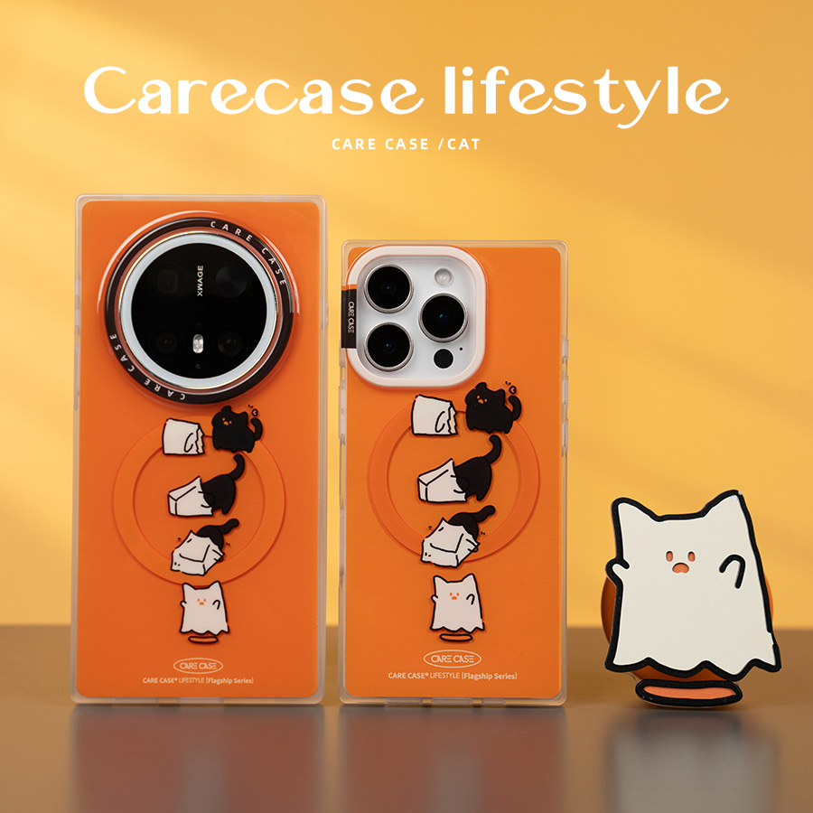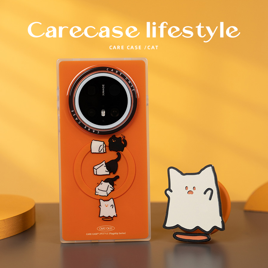 CARECASE 装扮小鬼猫咪方形磁吸手机壳适用于华为Mate 60 70 Pro/Pro+ 苹果iPhone 17 16 15Pro Max 原创设计