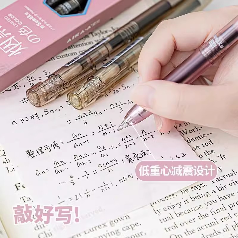 爱加低重心中性笔烟熏色限定按压减振水笔AK66双珠速干子弹头大容量刷题笔学生作业考试用笔黑红蓝替芯签字笔