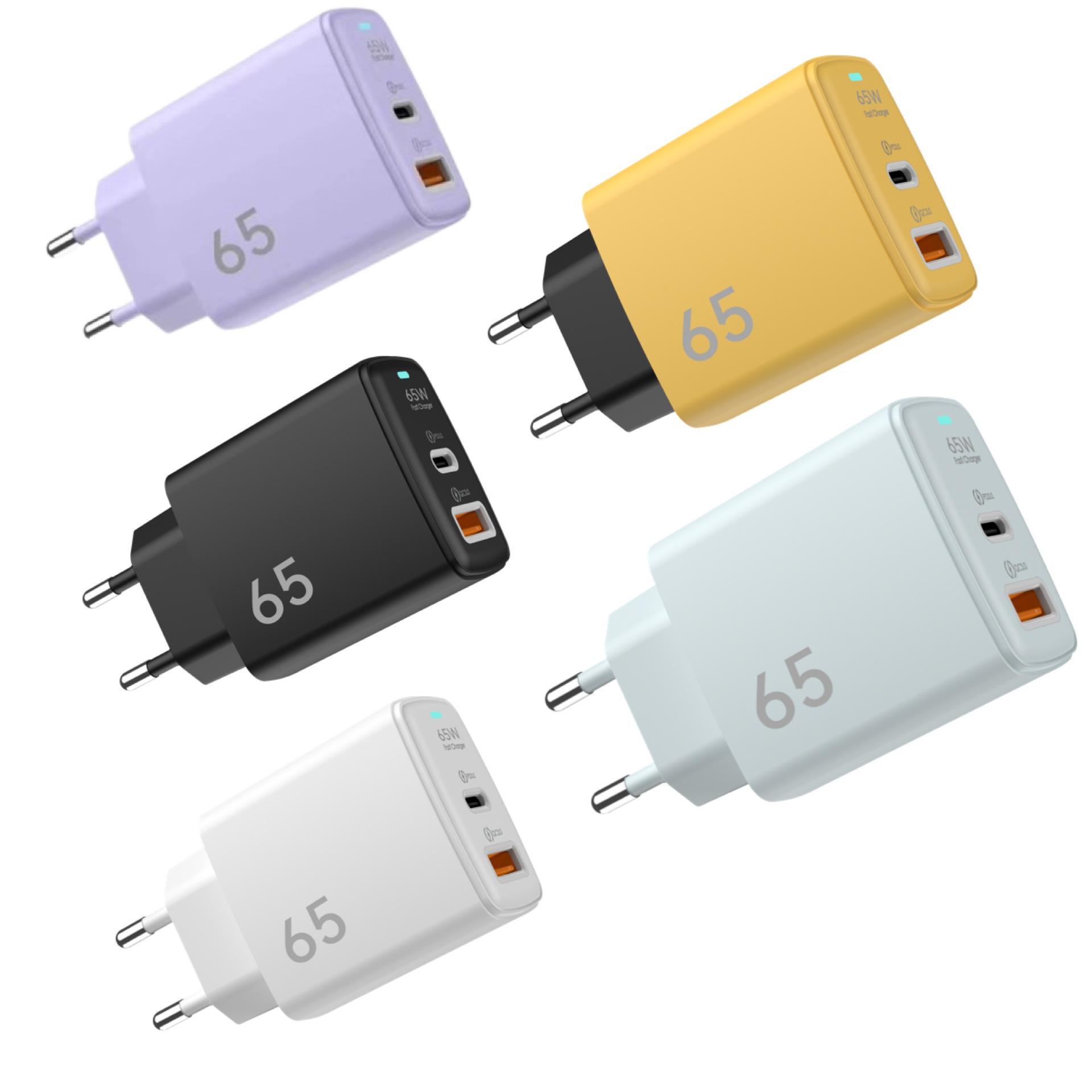 新款65W充电器超快充闪充极速C口+USB氮化镓PD协议双口同时快充
