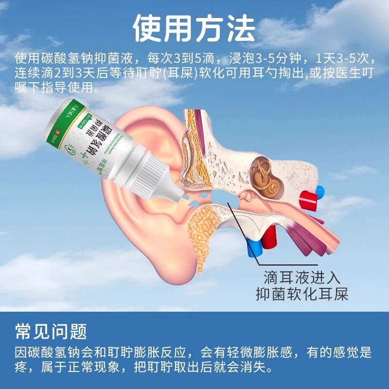 碳酸氢钠滴耳液医用官方旗舰店正品成人儿童软化耳屎耳道抑菌耵聍