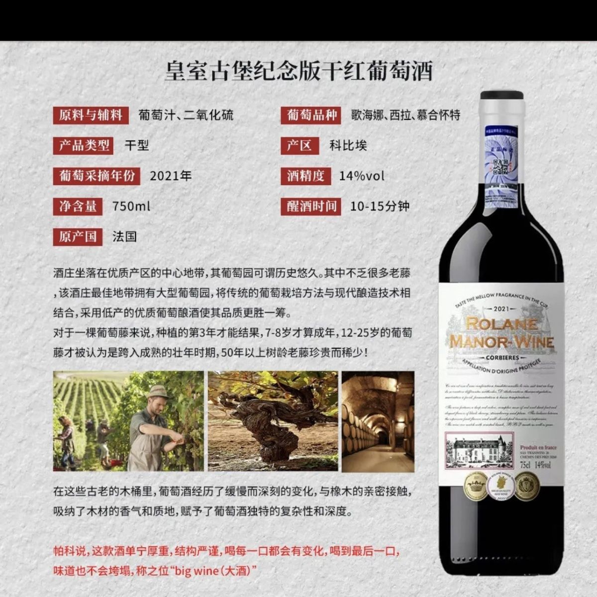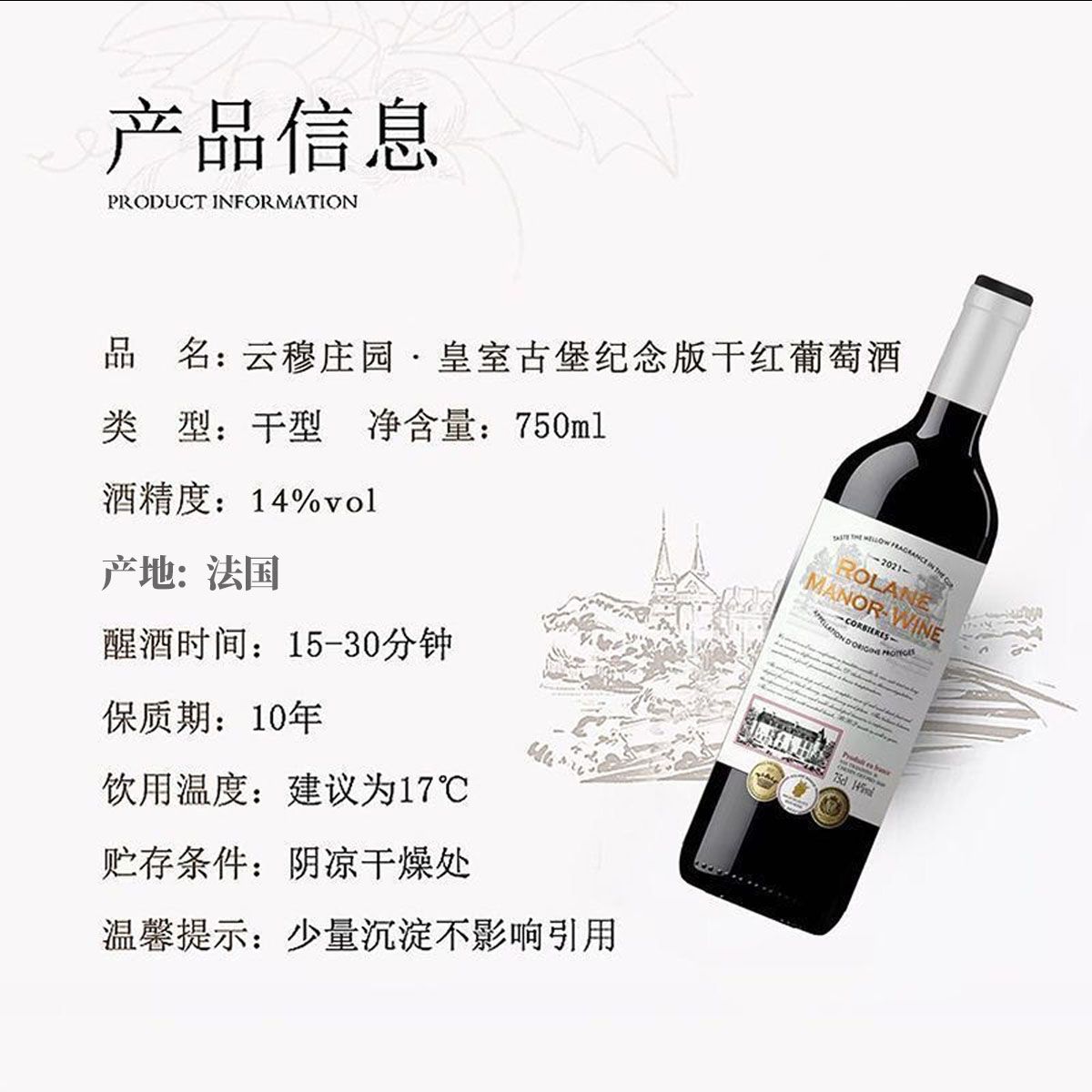法国进口AOP等级皇室古堡纪念版干红葡萄酒6瓶整箱礼箱节庆送礼装