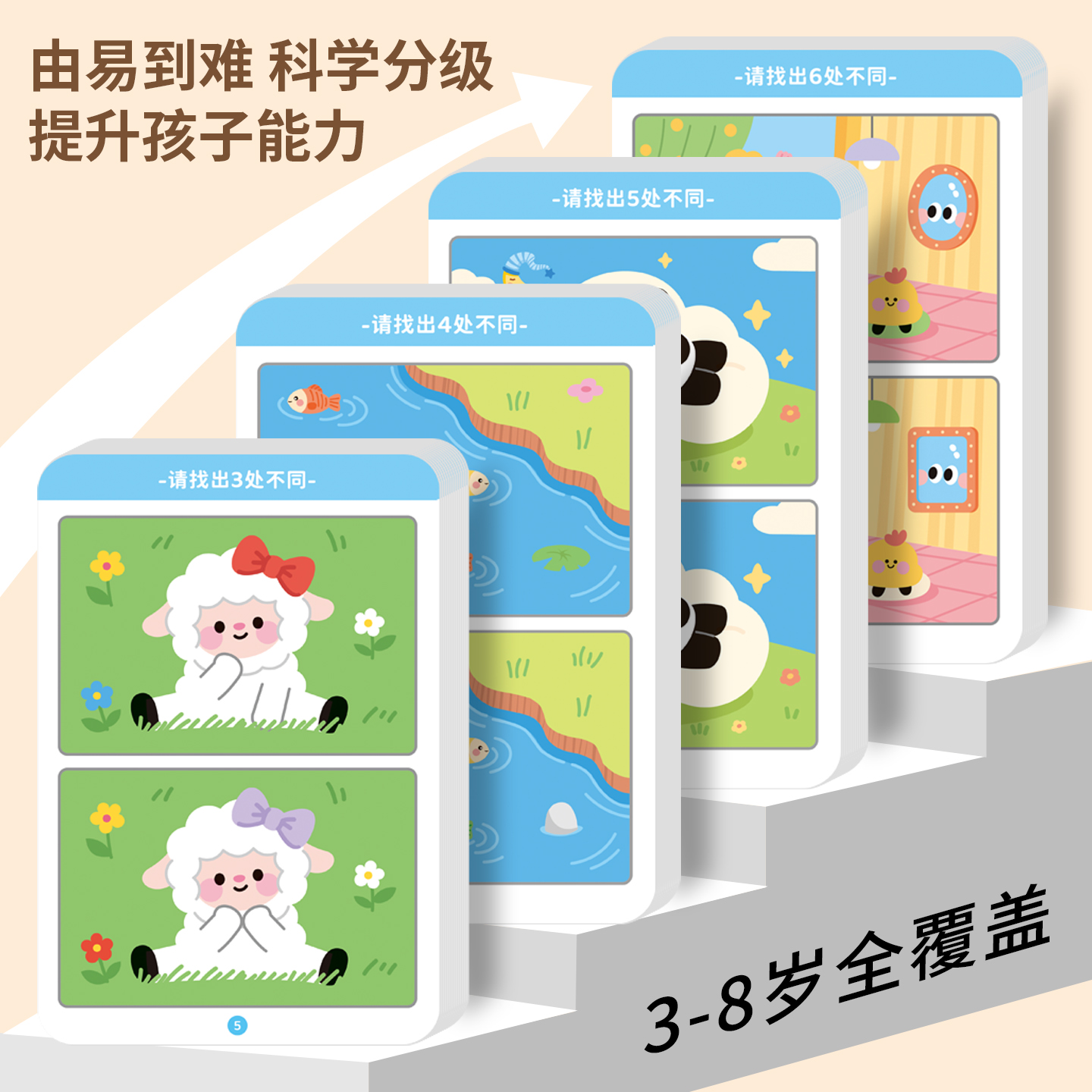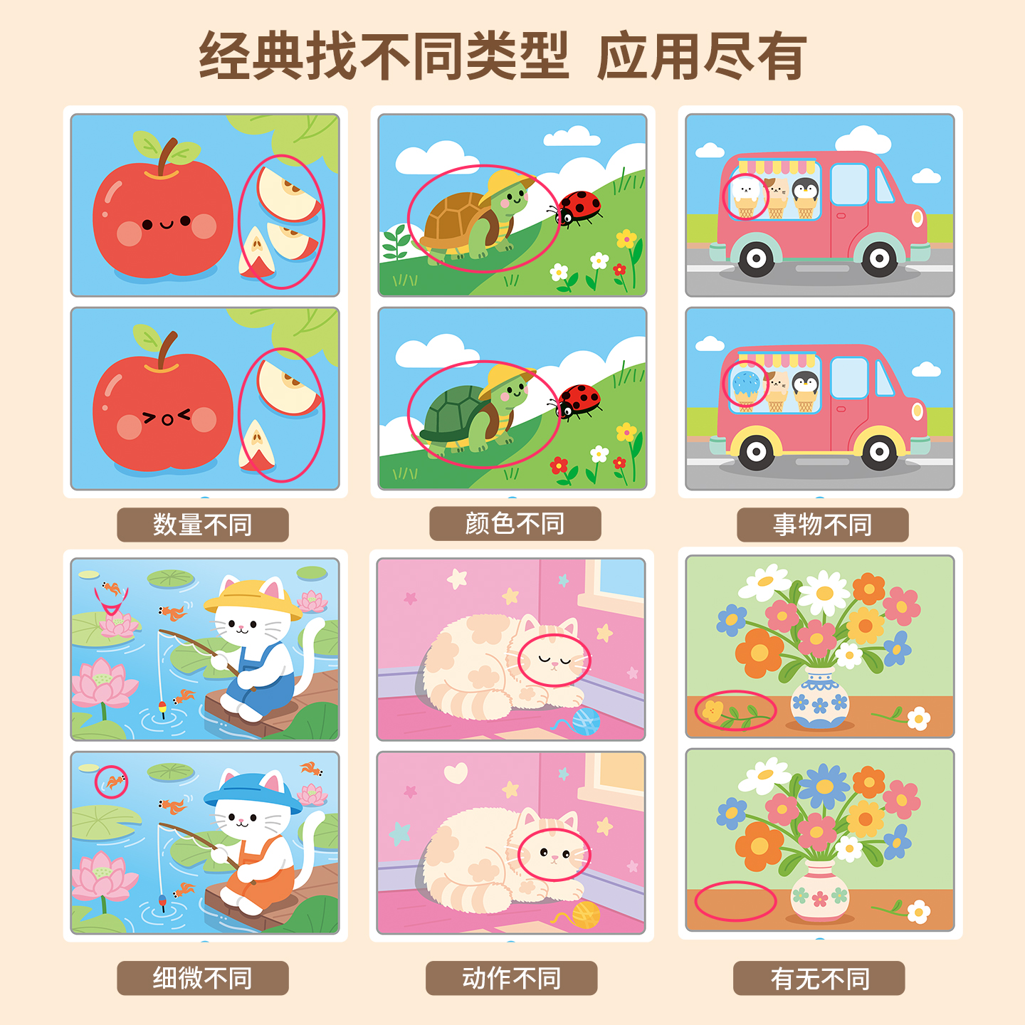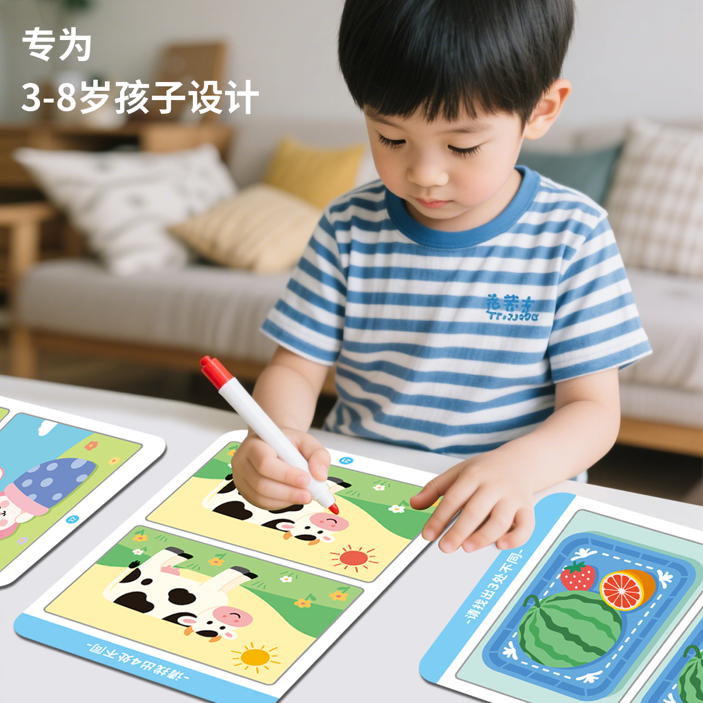 趣味找不同专注力训练卡片儿童幼儿园3-8岁亲子益智闯关游戏玩具早教思维找茬书训练卡可擦写重复使用绘画本