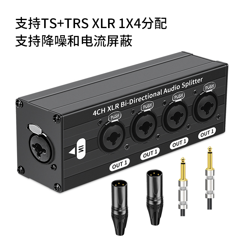 卡侬音频分配器1进4出6.35平衡XLR音频扩展器专业音频信号分音器
