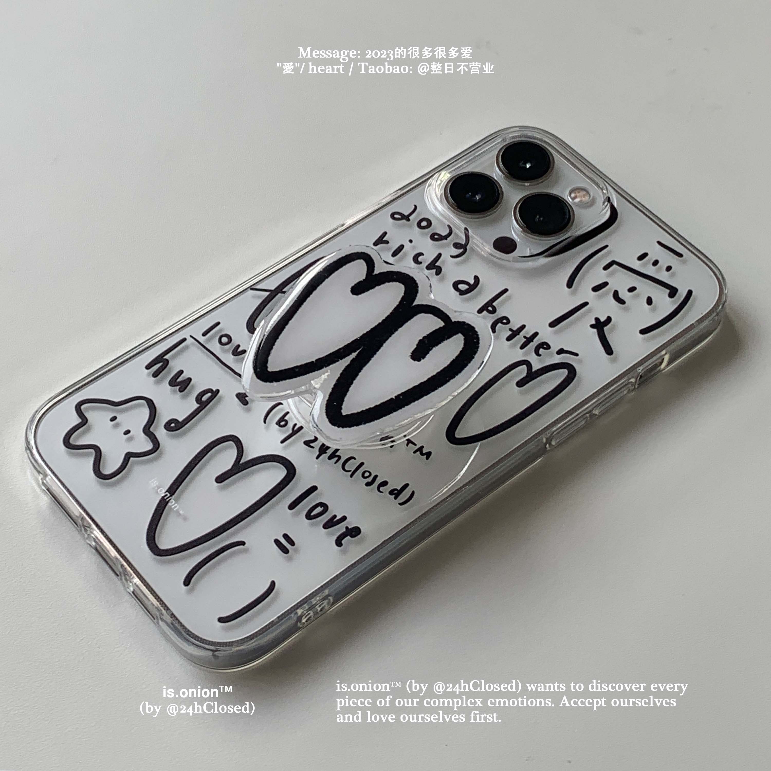 整日不营业原创「很多的爱」ins风透明17promax可爱礼物生日手机壳全包15promax苹果硅胶16pro支架保护套软壳