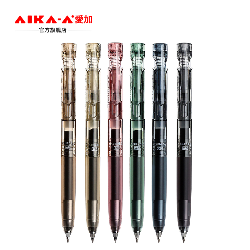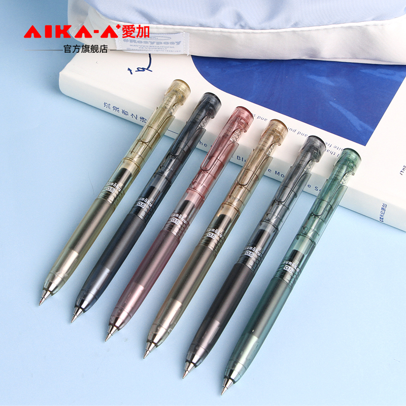 爱加烟熏色低重心考试中性笔AK66按动黑色高颜值速干顺滑初中男女生子弹头大容量办公签字刷题水笔进口0.5芯