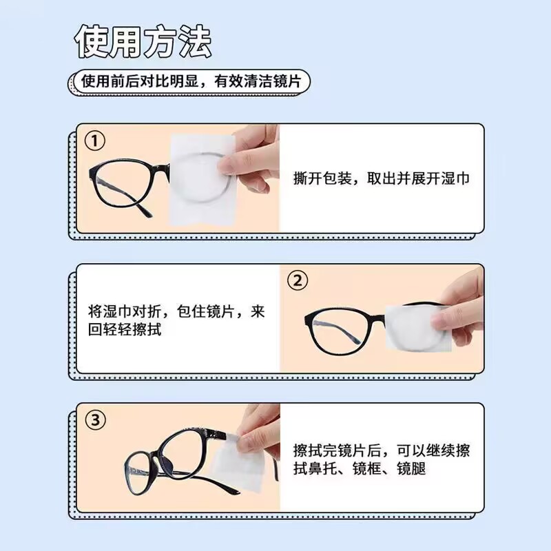 眼镜专用清洁湿巾一次性眼镜布擦拭手机屏幕镜片镜头去油去污神器