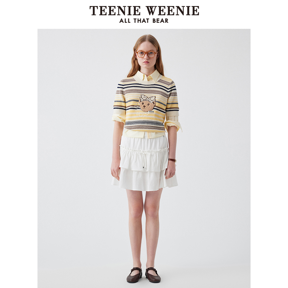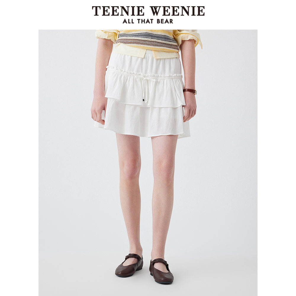 TeenieWeenie小熊奥莱2025夏季新款甜美白色蓬蓬蛋糕半身裙短裙子