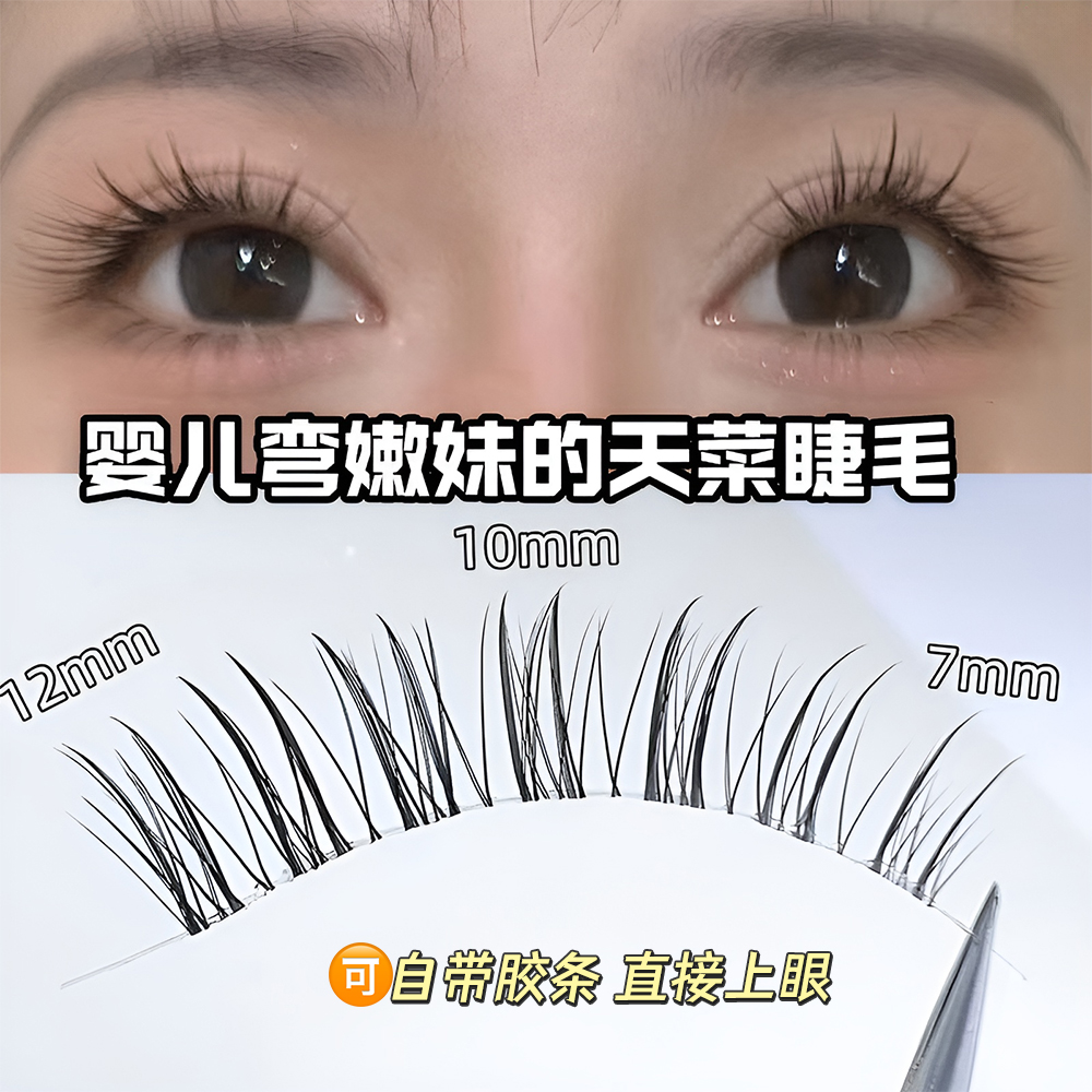 免胶一片式婴儿弯自然无辜妈生假睫毛整条透明梗伪素颜幼态眼睫毛