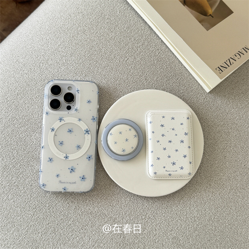 在春日ins韩系小众泼墨蓝花花磁吸无线充手机壳适用iPhone17promax全包15pro卡包保护壳16promax少女13/16pro