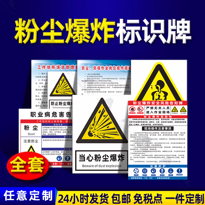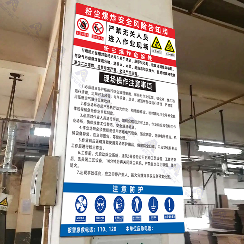 当心粉尘爆炸安全风险告知牌粉尘职业病危告知卡防止当心爆炸警示牌工业粉尘排放口标识牌清扫管理制度牌定制