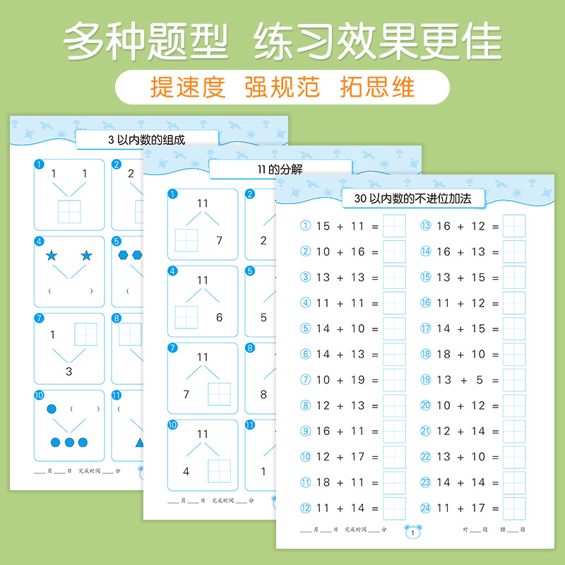 幼小衔接10/20/50/100以内加减法口算天天练学前数学专项训练老师推荐幼儿园大班升一年级练习册学前班口算题卡一日一练分解混合