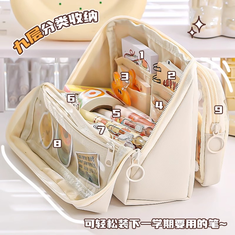 可拆卸痛包笔袋ins风女生2025新款高颜值文具盒学生大容量铅笔盒站立式九层透明初高中生多层多功能收纳笔袋