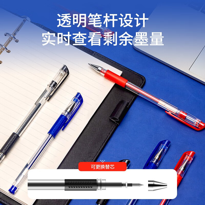 晨光中性笔按动黑笔0.5红色蓝色签字笔k35按动笔子弹头碳素水笔学生刷题笔教师办公文具用品医用墨蓝处方笔