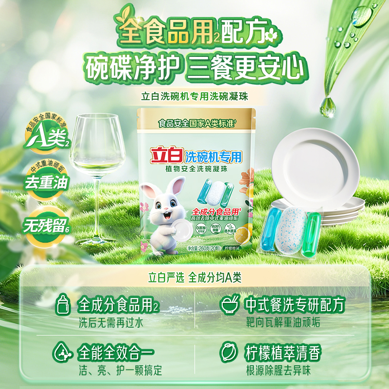 立白植物安全高效凝珠洗碗机专用洗涤剂洗碗除菌非粉块机体清洁