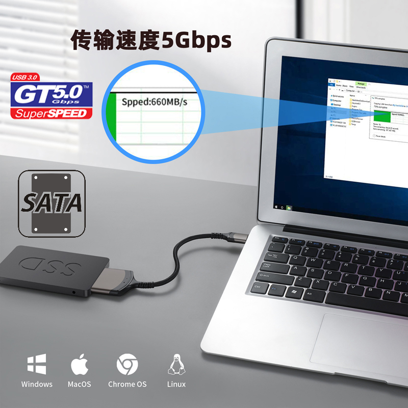 NFHK USB3.0转SATA易驱线 串口硬盘2.5寸移动硬盘转接线 支持2.5时笔记本硬盘 无需另外供电 USB-C合金外壳