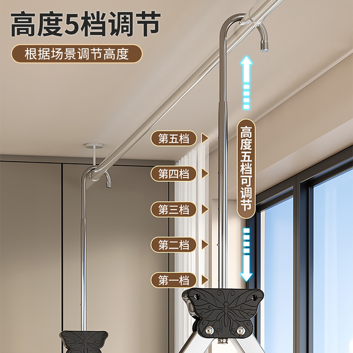 阳台折叠晾衣架不锈钢家用晒被子神器升降双挂杆多功能伸缩晾衣杆