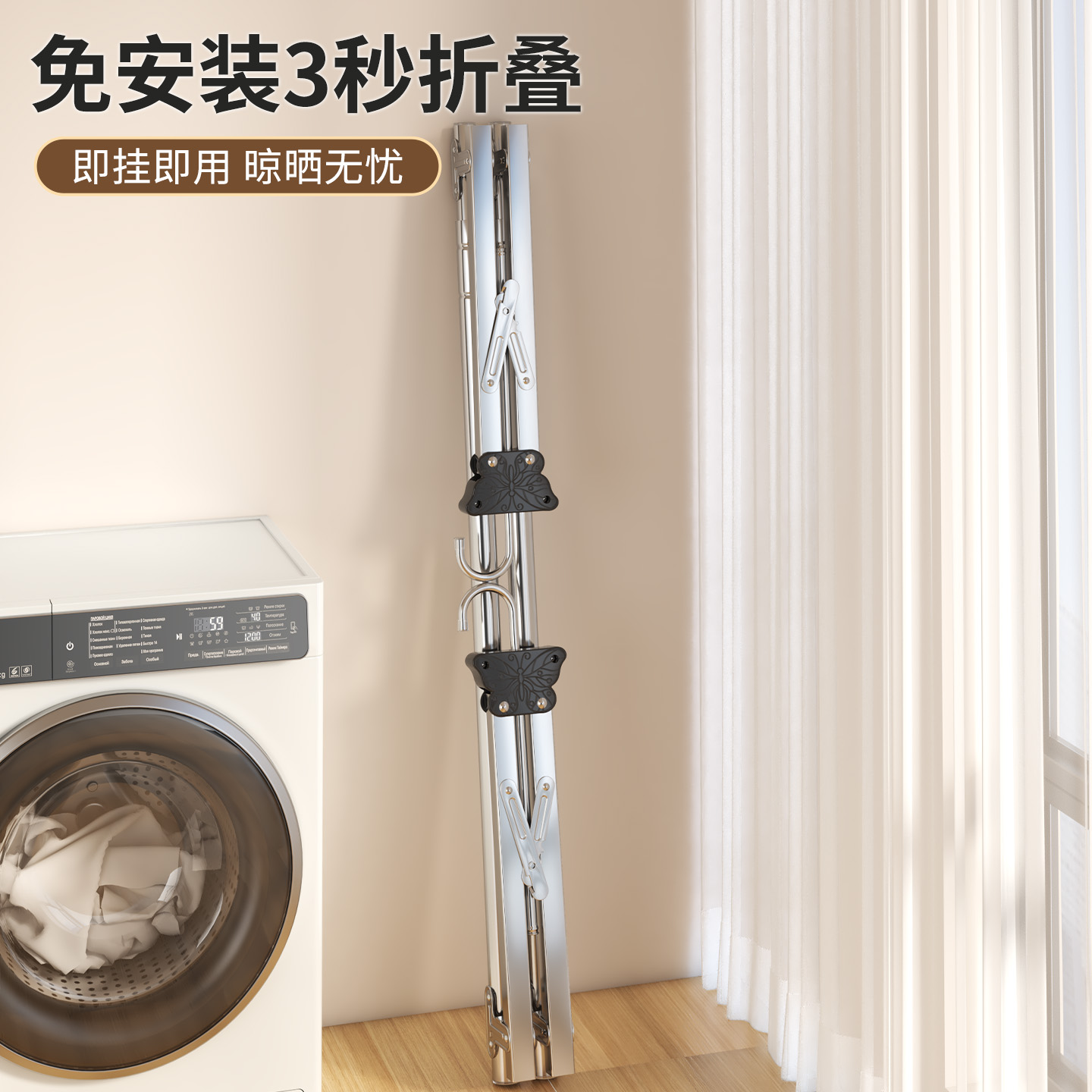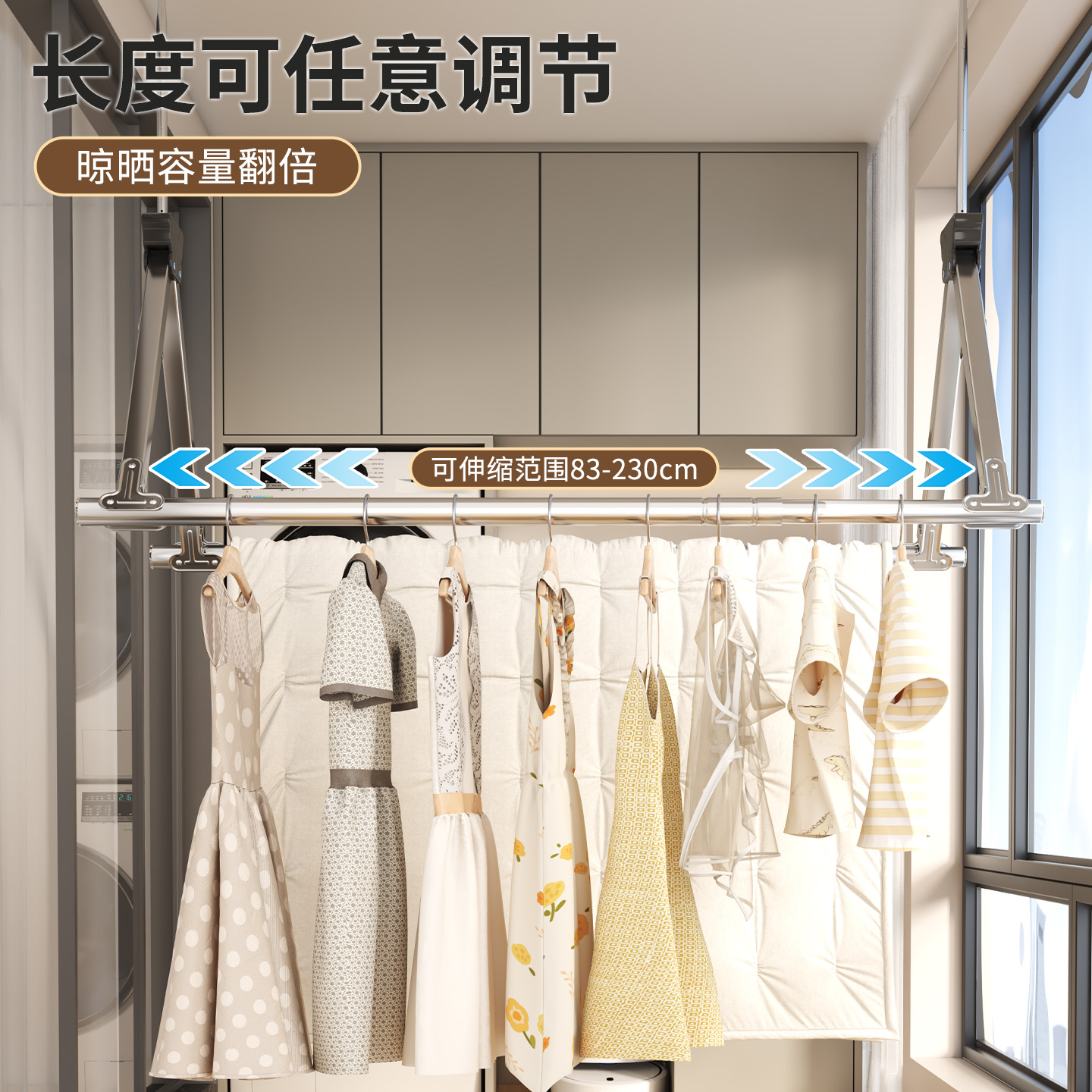 【政府补贴15%】阳台伸缩晾衣杆家用晾衣架室外折叠户外推拉窗户