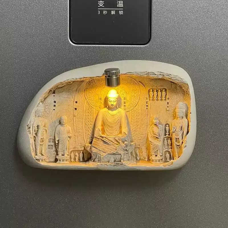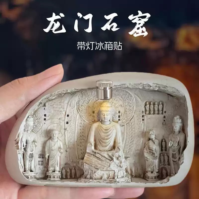 河南洛阳文创龙门石窟冰箱贴可发光佛像立体浮雕博物馆旅游纪念品