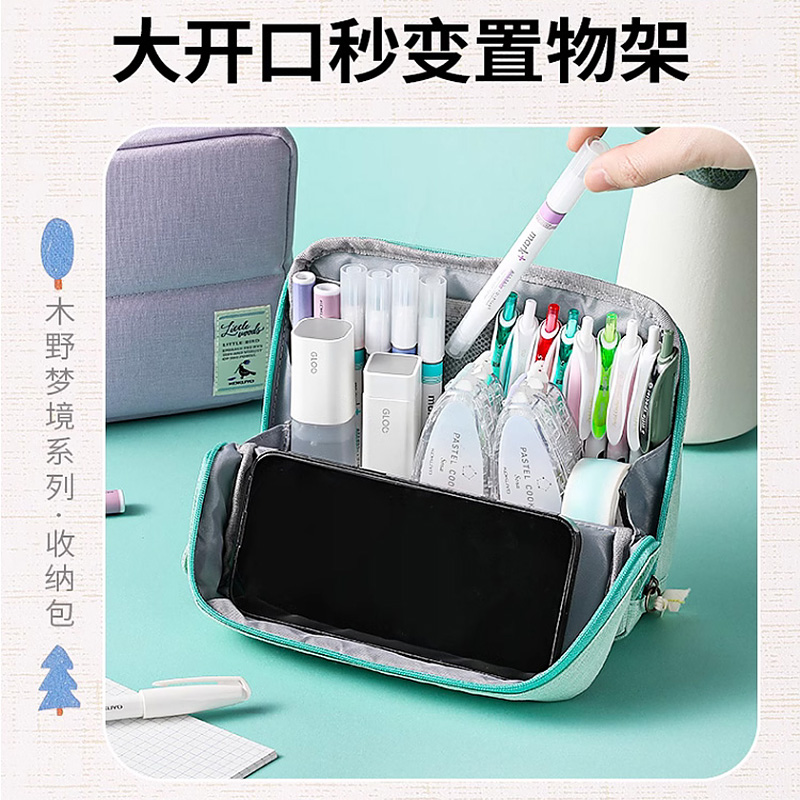 KOKUYO国誉木野梦境限定猫咪笔袋耐脏大容量收纳桌面可立式文具袋