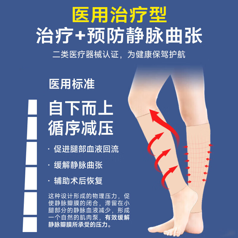 修正静脉曲张弹力袜治疗型压力袜术后护小腿抗血栓男士专用长筒