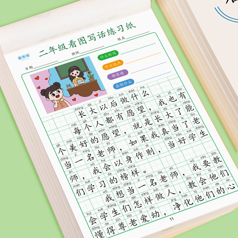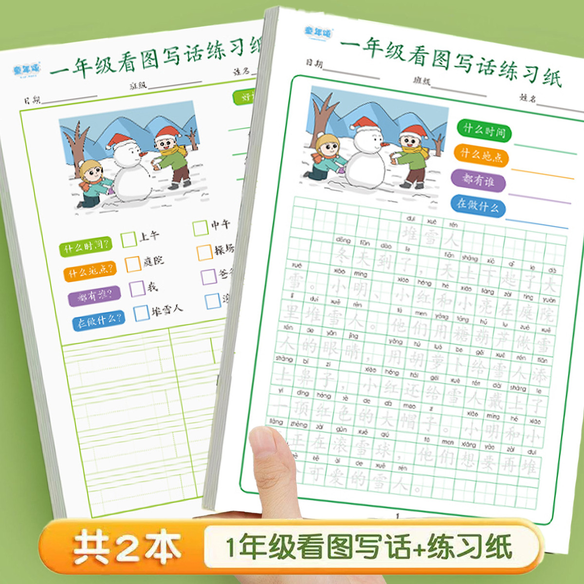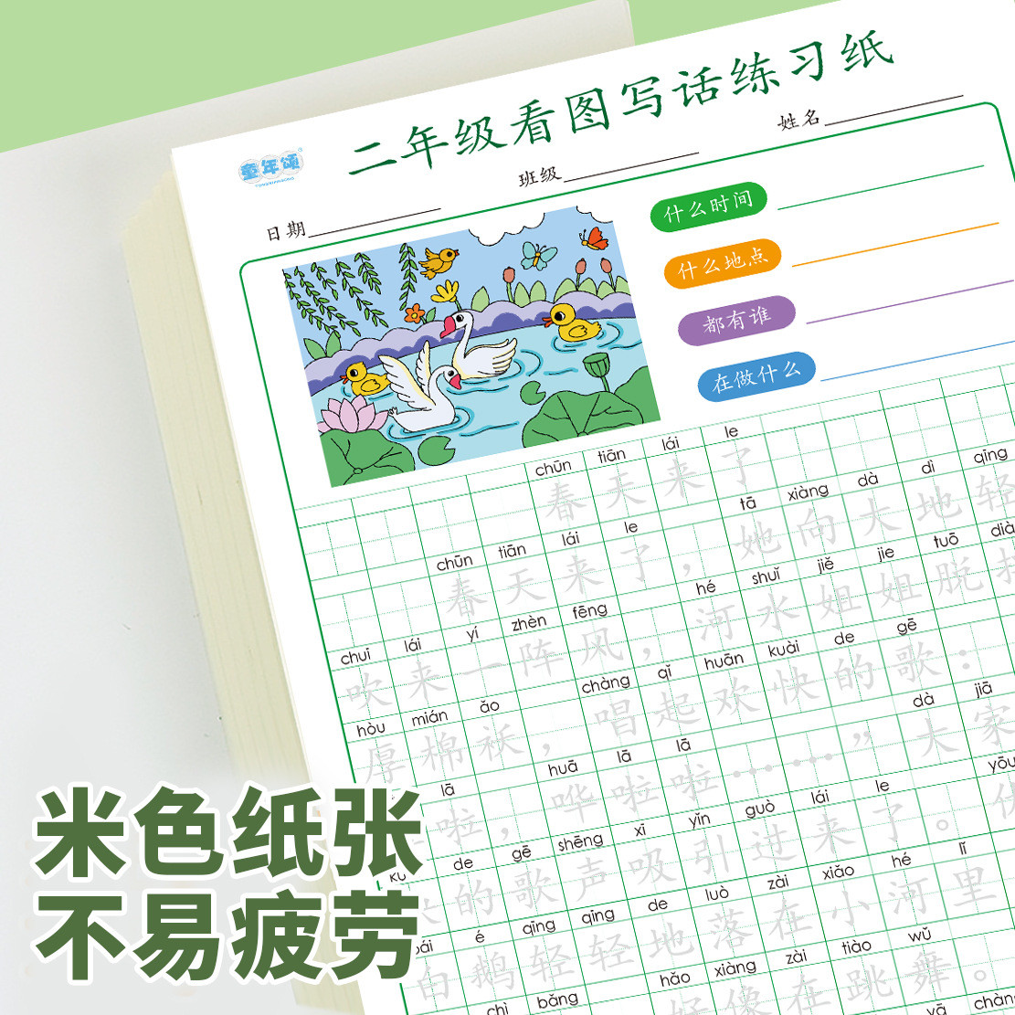 童年颂一二年级看图写话写作+练字+控笔一年级同步练字帖活页纸