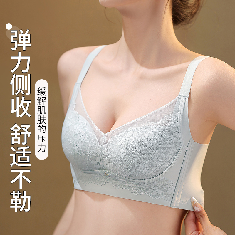 婷美25院线薄款小胸聚拢文胸调整型滑滑杯收副乳防垂蕾丝性感内衣