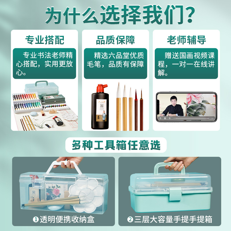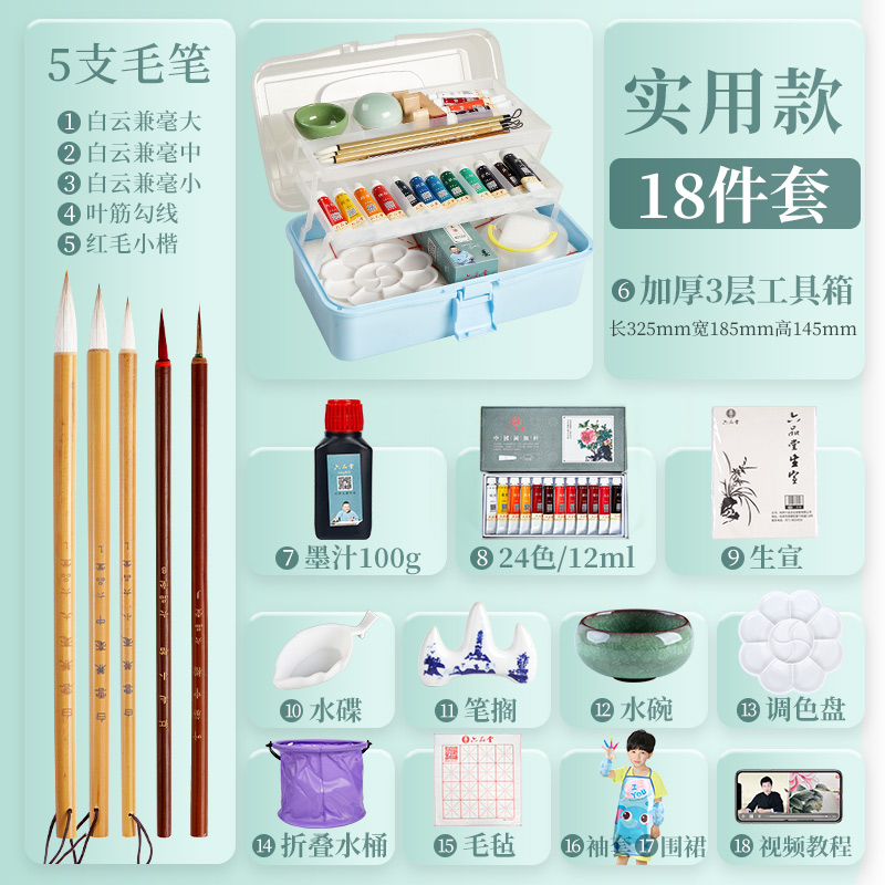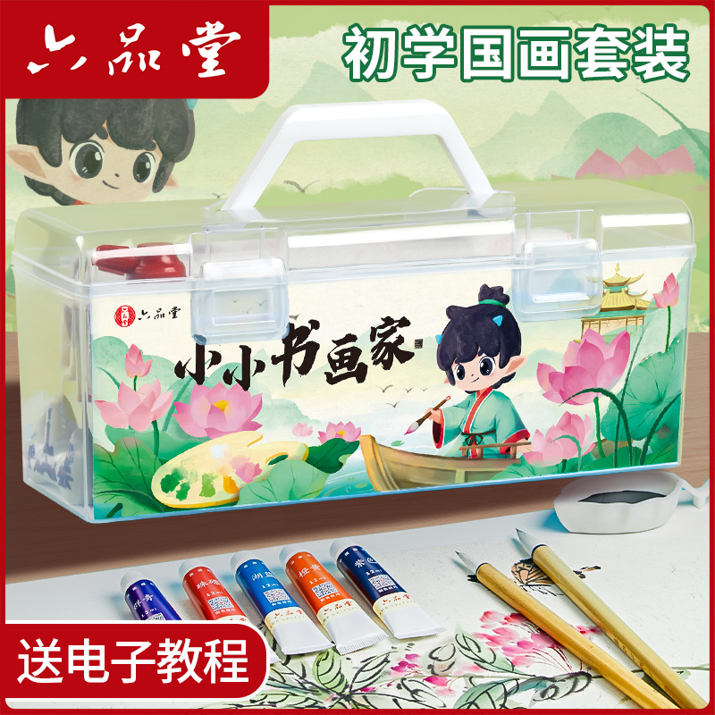 六品堂国画颜料初学者套装毛笔用品工具全套水墨画工笔画没骨画儿童入门12色24色成人美术生专业彩色材料